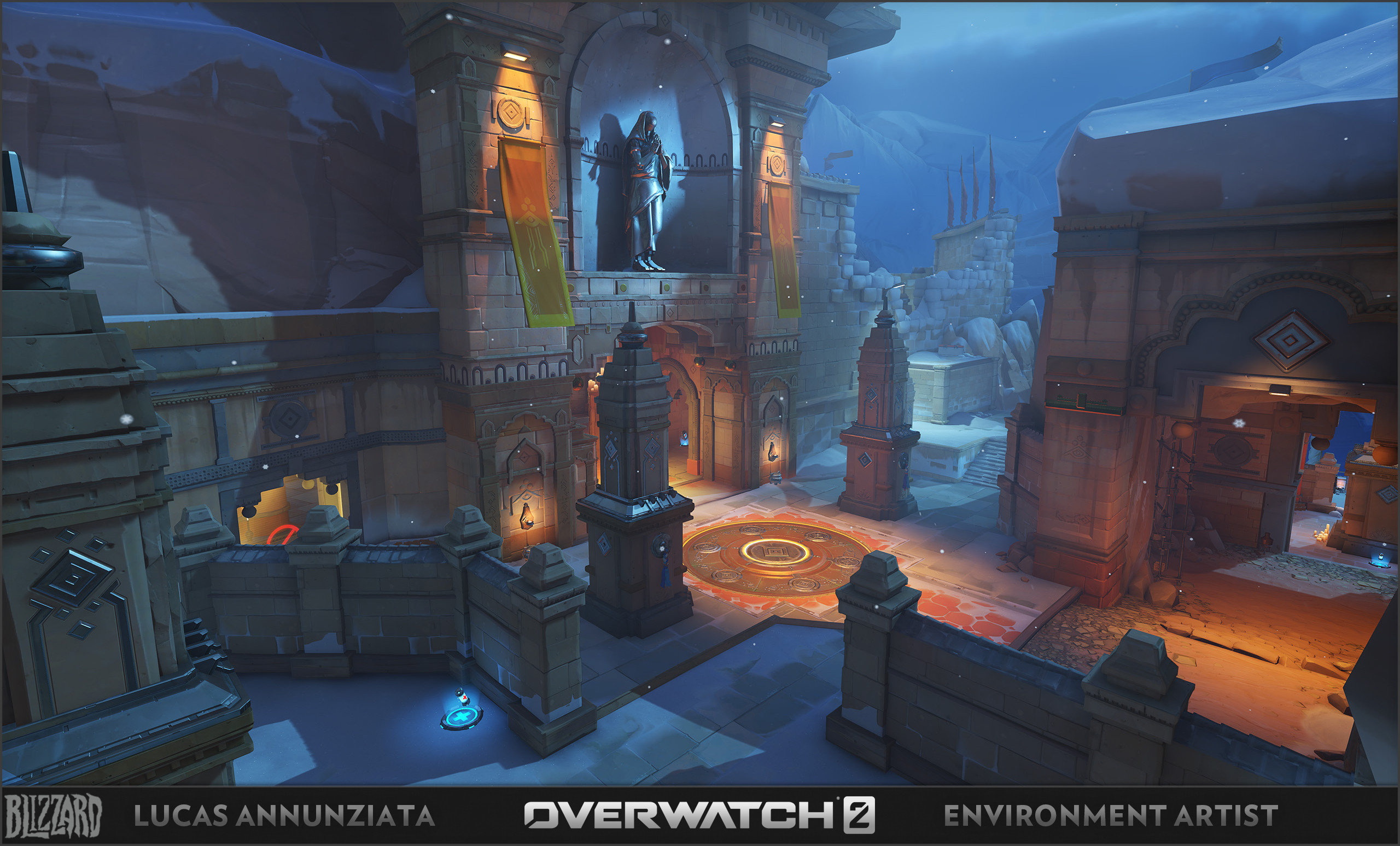 All Overwatch maps are a group effort. Specific shoutouts go to Thiago Klafke who worked on the area 1 city side buildings, Philip Klevestav who worked on the cave interior, Courtney Vogel who worked on the backdrop mountains.
